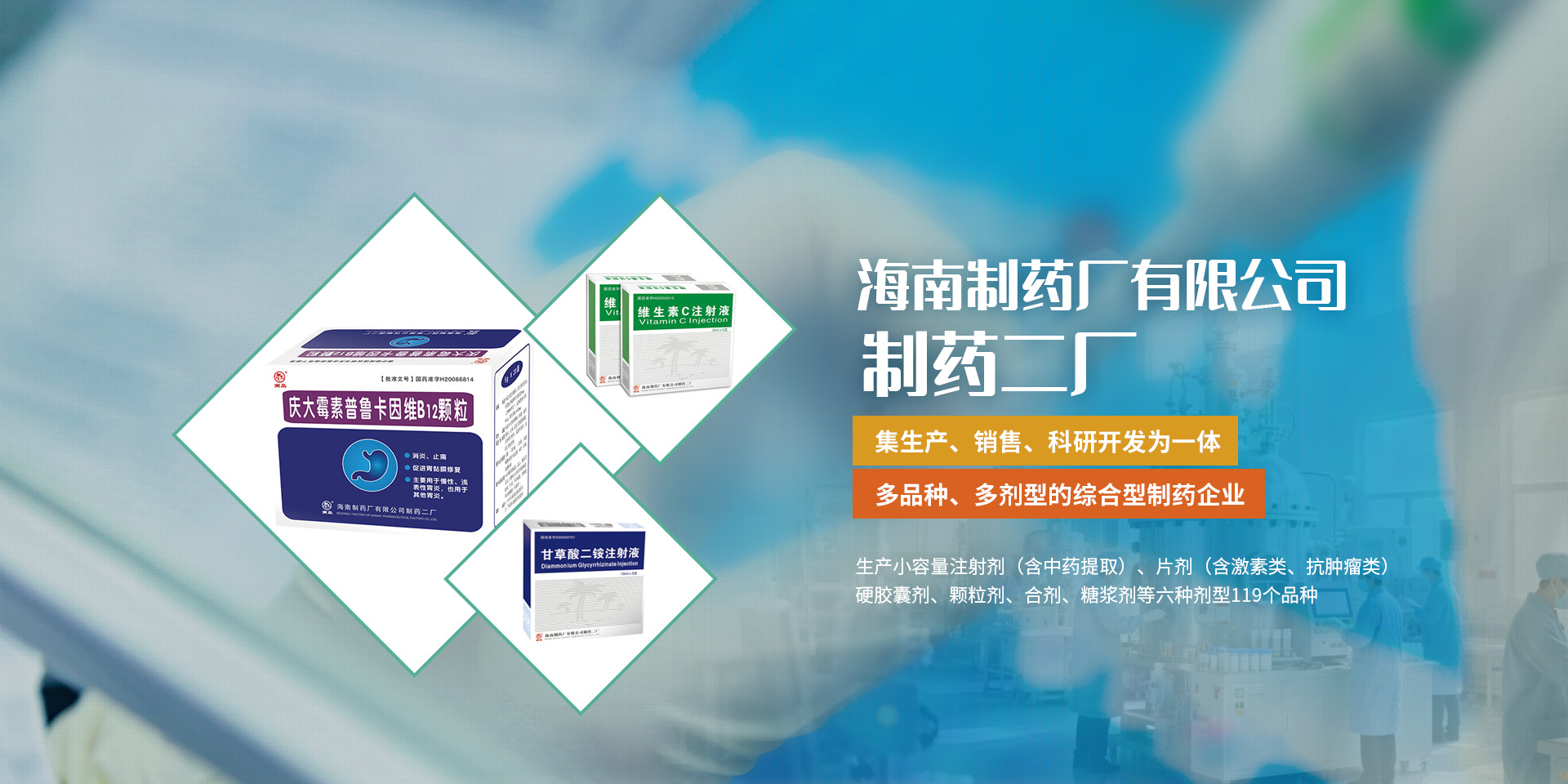 海南制藥廠有限公司制藥二廠座落在風景秀麗的紅旗渠畔,是集生產、銷售、科研開發為一體,多品種、多劑型的綜合型制藥企業。公司廠區占地面積50000平方米,建筑面積21280平方米,倉儲面積6099平方米,質檢面積531平方米。主要生產小容量注射劑(含中藥提取)、片劑(含抗腫瘤)、硬膠囊劑、顆粒劑、糖漿劑、合劑等七種劑型119個品種。公司總人數365人,各類技術人員75人。公司現有符合GMP標準的生產線五條,年生產能力為小容量注射劑6億支、片劑6億片、膠囊劑6000萬板、顆粒劑3000萬包。